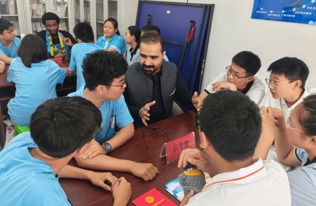 在随后的分组交流环节,中外学生围绕“兴趣爱好”、“中国印象”等热门话题展开深度互动。留学生们踊跃分享在中国的求学见闻与生活感悟,畅谈对中国传统文化、现代发展的真切体会;中小学生们则积极用外语提问交流,展现出对异国文化的浓厚兴趣与探索热情。不同语言交织碰撞,不同文化相互交融,现场成为一片跨越国界的友好交流热土。