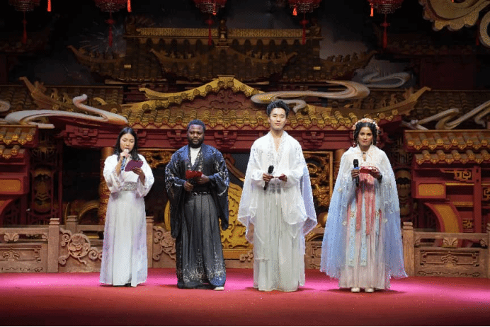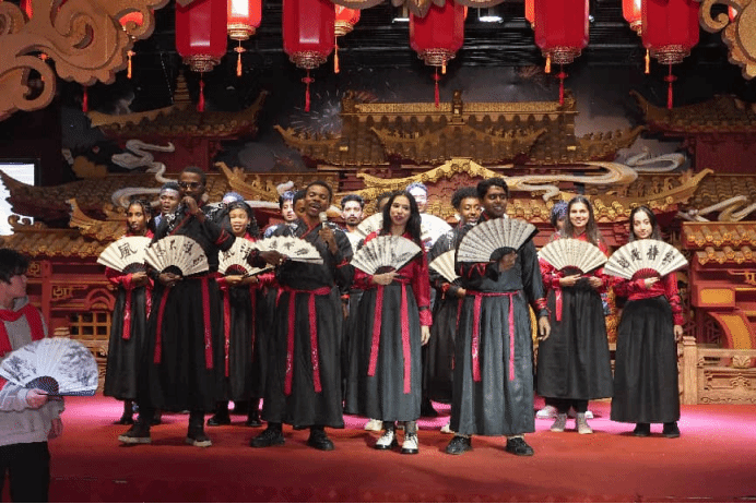 演出现场张灯结彩,洋溢着喜庆祥和的新年氛围。留学生们倾情投入,呈现了20余个精心编排的节目。活力四射的非洲鼓乐与舞蹈点燃全场热情,婉转悠扬的东南亚民歌令人沉醉,充满中亚风情的民族舞步摇曳生姿。身着中国传统服饰的留学生主持人的精彩串词与留学生们的出色表演,将本国风情与中国文化完美融合,展现了他们对中华文化的深刻理解与创新表达。舞台成为世界文化交相辉映、美美与共的生动缩影。